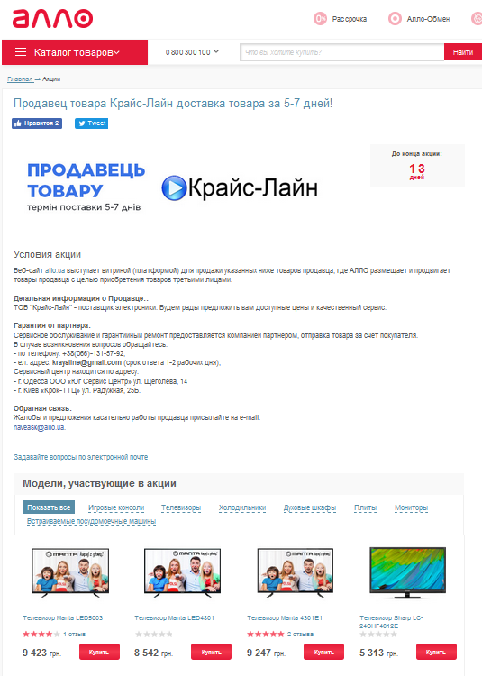 Пример, оптовая компания по продаже электроники ООО "Крайс-Лайн", партнер сайта "Алло", продающий горы техники. Только зарегистрирована она в киевской квартире, в которой никто не знает о ее существовании, за прошедший год сменила четырех руководителей, два адреса и два вида деятельности. И кроме как на сайте "Алло" нигде товар не продает.