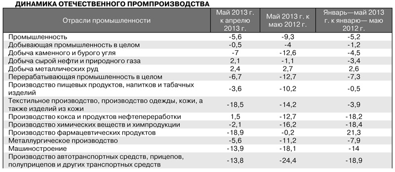 Впрочем, эти цифры будут выглядеть куда более пугающе, если учесть такой технический фактор как низкая база сравнения. Ведь 2012-й трудно назвать удачным для украинской промышленности. В последний раз незначительный рост (+2% к аналогичному периоду) был зафиксирован как раз в мае прошлого года. Это были данные по работе промышленности также за пять месяцев. С тех пор наблюдалось систематическое падение, на фоне которого майская статистика выглядит как стремительный обвал. Худшие результаты наблюдались лишь в кризисном 2009 г.