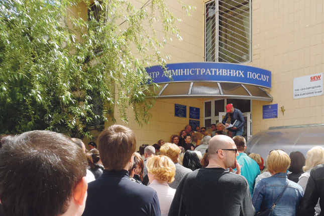 К отделу госрегистрации Дарницкого района Киева корр. ZN.UA подъехал как раз к тому времени, когда чиновники закрывали кабинеты и уходили обедать, а несколько сот очередников, покинув здание, собрались у его входа. Оказалось - на очередную перекличку. Это довольно длительное мероприятие не придало оптимизма уставшим и измотанным людям, многие из которых простояли в живой очереди с шести, а кто - и с пяти часов утра. Сведения, озвученные самоорганизовавшимися предпринимателями с импровизированной трибуны, тоже не порадовали. Из записавшихся в очередь предыдущего дня нескольких сотен человек документы на регистрацию успели сдать менее ста. Таким образом, очередь текущего дня, дополненная вновь записавшимися, превысила 500 чел. И едва ли не у каждого были основания для беспокойства. Оказалось, например, что существовало несколько списков. Кто-то, записавшись ранним утром, к обеду не обнаруживал своей фамилии в списках, но, предоставив фотоснимки, возобновлял свое место в очереди. Другие, не догадавшись зафиксировать свое присутствие, смирялись с неудачей и записывались вновь. Нервозная атмосфера способствовала возникновению ссор и скандалов. Но присутствия милиции, несмотря на почти круглосуточное скопление людей, не наблюдалось.