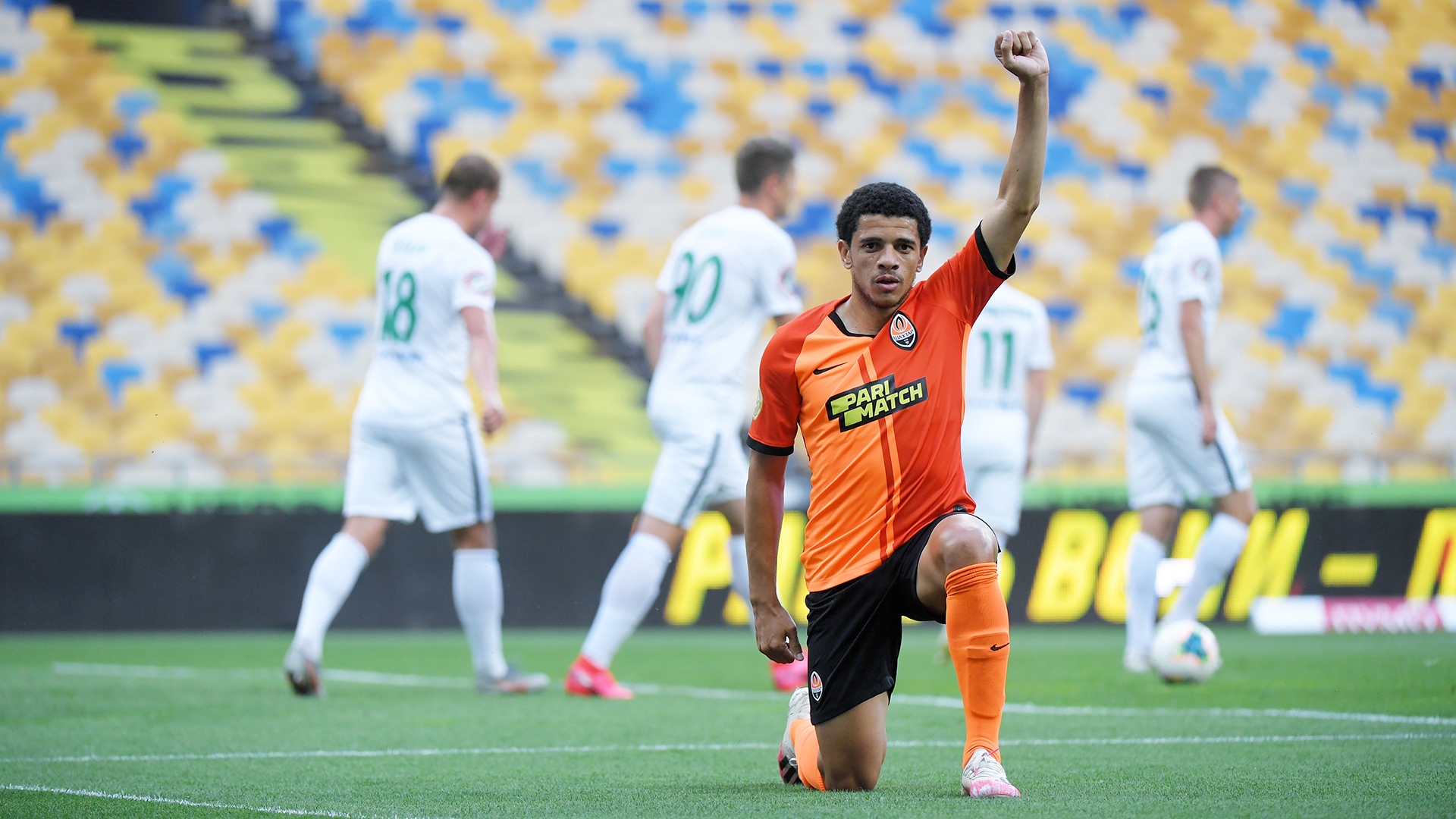 Вчера, 20 июня, полузащитник "Шахтера" Тайсон в матче 27-го тура УПЛ с "Александрией" (3:2) встал на одно колено после реализованного на 13-й минуте пенальти.