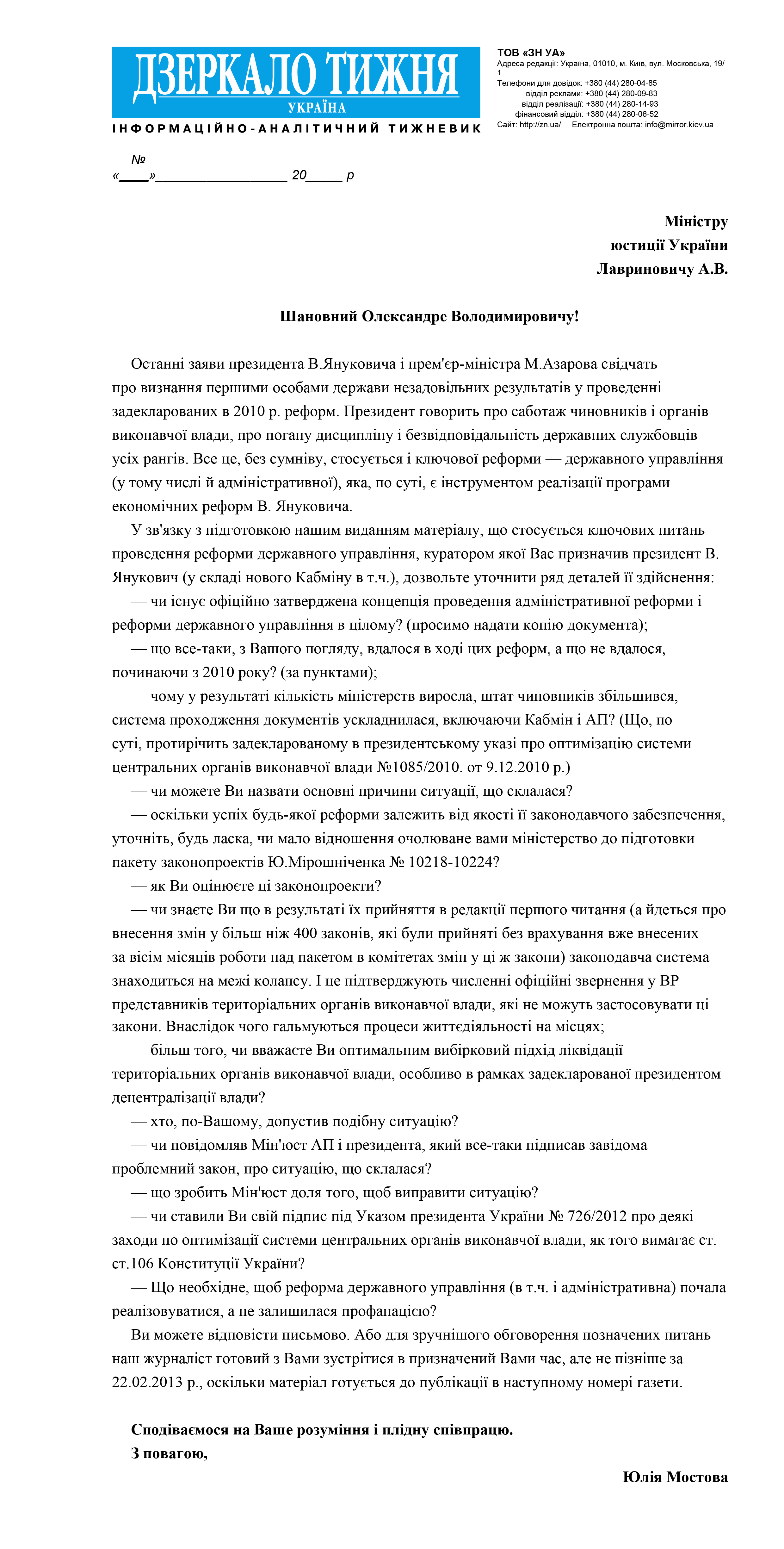 В рамках административной реформы предполагалось три этапа. Первый касался оптимизации центральных органов власти. Второй - региональной организации территориальных органов государственной власти. Третий - реорганизации полномочий органов местного самоуправления. Важно уточнить, что на момент нашего разговора с Лавриновичем в 2011 году, Минюст активно готовил законодательное обеспечение второго этапа реформы. "В территориальных органах исполнительной власти будет в среднем сокращено 24% работников. Из 157 тыс. 142 человек останется 134 тыс. 389. Цифры не с потолка. Эксперты группы, которую я возглавляю, детально изучали все должностные инструкции, смотрели на их соотношение с нормативными актами высшего уровня. Было и живое общение с людьми - в Винницкой, Харьковской и Львовской областях. Кстати, многие чиновники признают, что десятилетиями выполняют абсолютно никому не нужную работу. Исходя из этого, был смоделирован каждый территориальный орган власти в оптимальной численности и структуре. Определены и те, которые должны быть вообще ликвидированы. Всю конкретику можно будет прочесть в указах президента и постановлениях правительства" - заявил тогда министр.