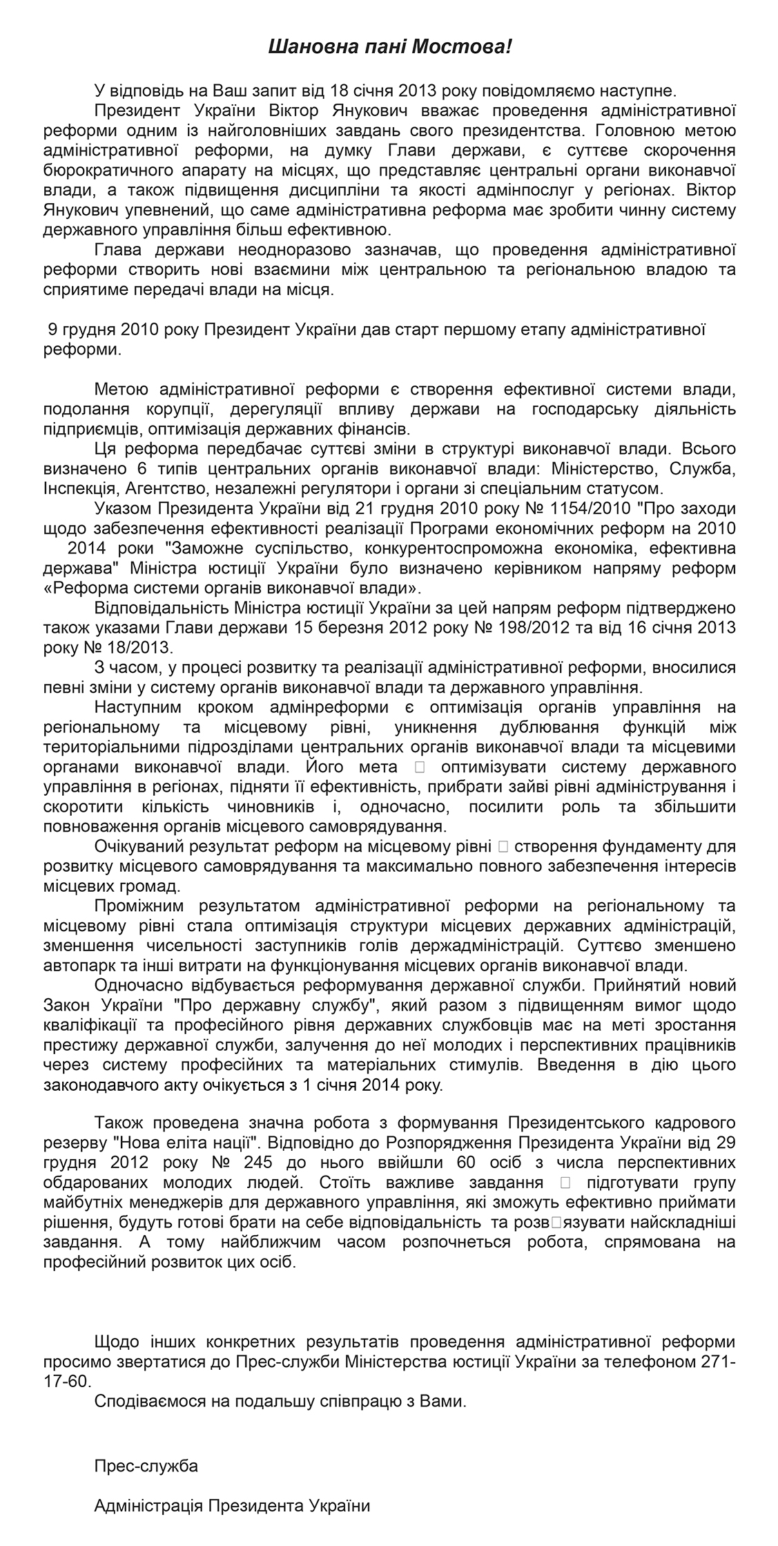 Надежда на создание действенной системы государственной власти без борьбы за полномочия, без распрей между президентом и премьером (от коих страна достаточно сильно устала за время правления Виктора Андреевича) многих примирила и с силовым возвращением к старой Конституции и с жесткой централизацией власти в руках нового президента. Бульдозер, каток (а именно этим словами чаще всего характеризовали политику команды Януковича) в подобном деле мог пригодиться. На данном этапе. Для того чтобы навести порядок. Указ президента Януковича об административной реформе (принятый в ночь на девятое декабря 2010 года) выглядел многообещающе. Речь шла о сокращении армии чиновников, об экономии государственных финансов, о четком разделении полномочий между органами государственной власти и еще много о чем, способном оказаться полезным для страны.