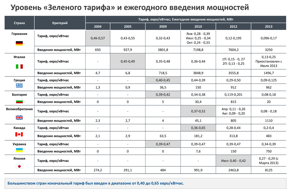 При принятии в 2009 г. закона о "зеленых" тарифах такие высокие значения объясняли необходимостью "поставить на ноги" новую энергетическую подотрасль.