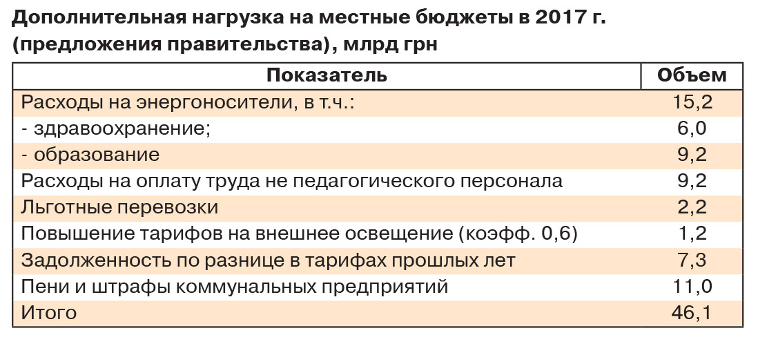 1,2 млрд грн (постановлением НКРЭКУ №3141 от 28 декабря 2015 г. коэффициент увеличен с 0,25 до 0,6 с 1 марта 2016-го). Дополнительная нагрузка на местные бюджеты в 2017 г. приведена в таблице.