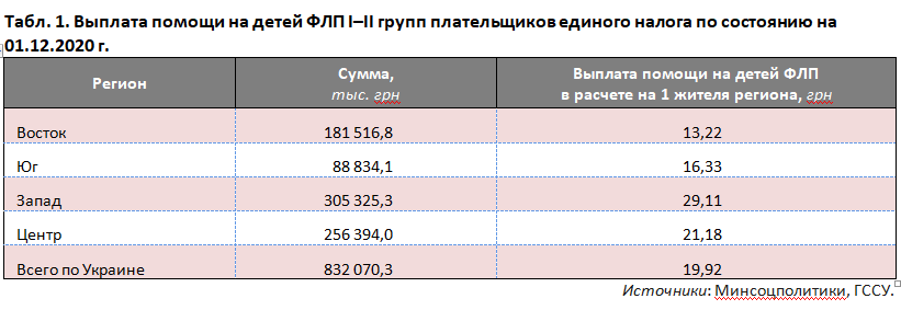 Прежде всего речь идет о выплате помощи на детей физическим лицам-предпринимателям (см. табл. 1), которые выбрали упрощенную систему налогообложения и относятся к первой и второй группам плательщиков единого налога. Фактически речь идет об определенной компенсации снижения или потери доходов соответствующей категории населения.