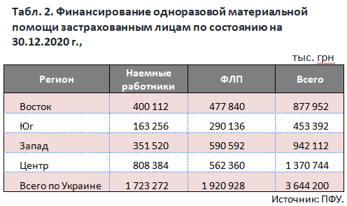 В 2020 году были также введены разовые выплаты до 8000 грн, которые могут получить наемные работники или ФЛП (см. табл. 2). Фактически это одноразовая материальная помощь застрахованным лицам, которые могут потерять доходы в случае полного запрета сферы их деятельности вследствие усиления ограничительных противоэпидемических мер.