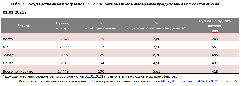 Важную роль в поддержке местного бизнеса играет Государственная программа «5–7–9», состоящая из трех компонентов, а именно: компенсации процентов, кредитных гарантий и антикризисной поддержки (см. табл. 3).