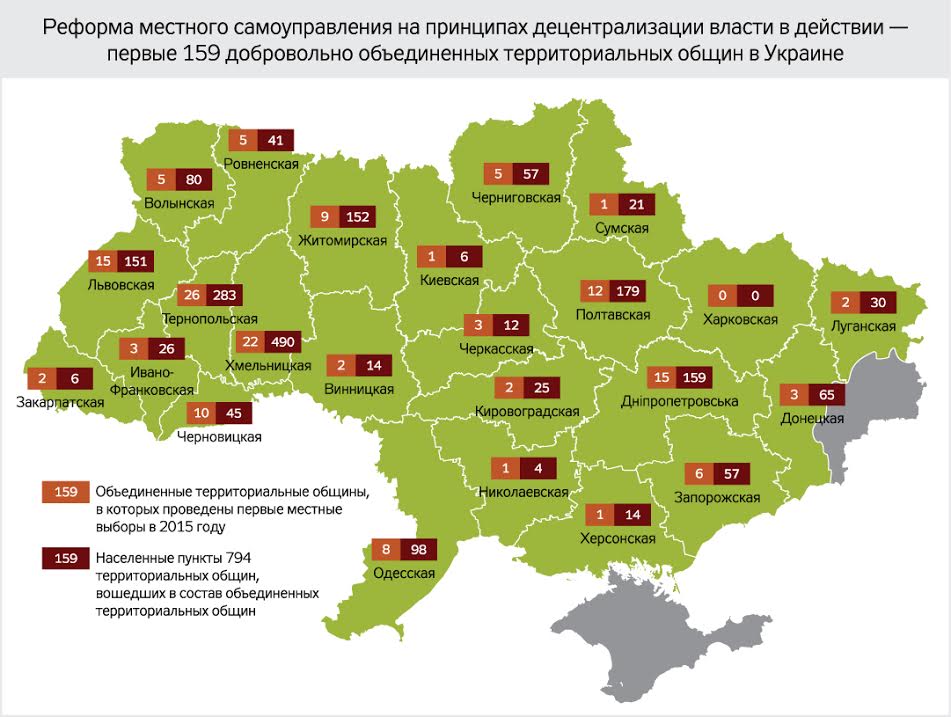 Так что авторы объединения новых громад не скрывают обеспокоенности таким подходом. Например, в 2017 г. стартует Великодедеркальская объединенная громада (она будет включать пока пять сельских рад с населением 3700 жителей). Действующий сельский голова Великих Дедеркал Иван Данилюк уже сейчас переживает, что значительную часть средств, которые должны быть направлены на развитие громады, придется перебрасывать на содержание учебных заведений и медицины. С ним солидарен и поселковый голова с. Залисцы Любомир Фесик (тамошняя громада на старте объединит десять сел и поселок с населением 6000 жителей).
