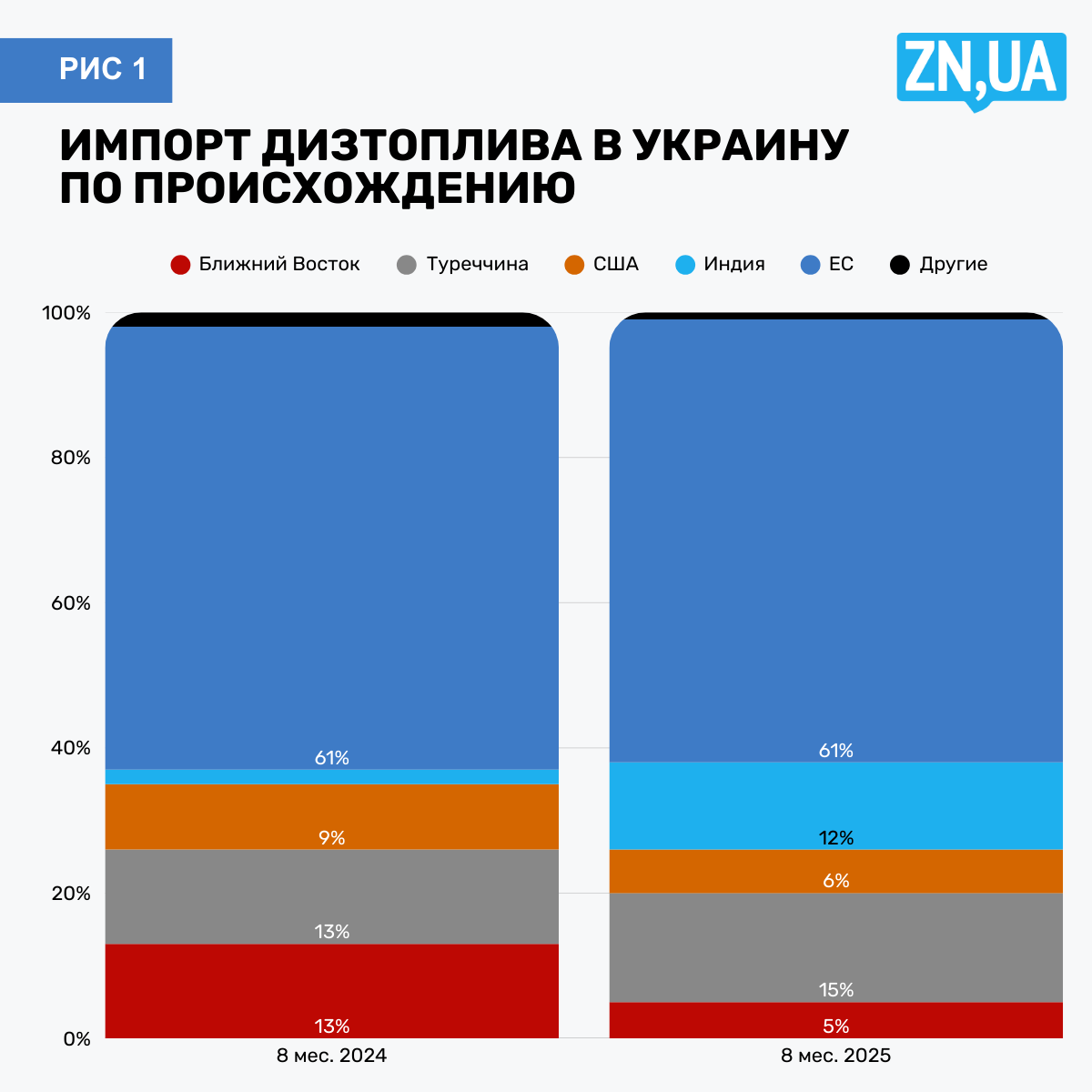 Ландшафт украинского рынка дизельного топлива снова изменился. Если в прошлом году триумфовали греки, а на заправках водители тестировали качество Made in USA, то теперь фокус внимания сместился на индийский дизель. За восемь месяцев его доля в импорте увеличилась в семь раз и достигла 12%, а в августе установила рекорд — 18%. Нюанс в том, что «дизель со слоном» (как на легендарной пачке чая) производится с использованием огромных объемов российской нефти. Поскольку после широкомасштабного нападения на Украину именно Индия и Китай стали крупнейшими покупателями кремлевской нефти, а со временем Индия превратилась в мощного экспортера топлива в Европу, где оно заменило российское. В Европе справедливо считают это обходом санкций, и с января 2026 года вступит в силу запрет на топливо из российской нефти. Похоже, что Украина даже несколько опередит европейцев в этом вопросе: во время написания этого материала стало известно, что с 1 октября будет введен усиленный контроль за импортом индийского ресурса, и это может вернуть его объемы к минимальным.
