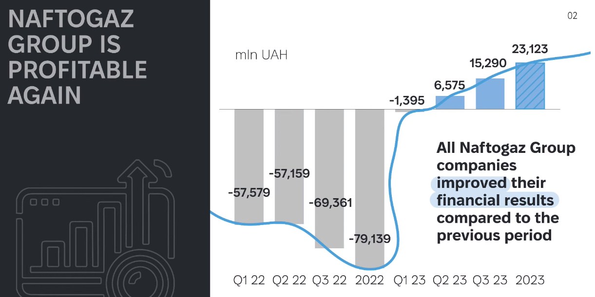 Консолидированная прибыль группы предприятий "Нафтогаза", находящейся в полной собственности государства, составила 23 миллиарда гривен. За предыдущий годовой промежуток финансовый результат был отрицательным – убытки на уровне 79 млрд гривен, сообщил Алексей Чернышев, председатель правления и руководитель НАК «Нафтогаз Украины» ютюб-проекта Business Breakfast с Владимиром Федориным.
