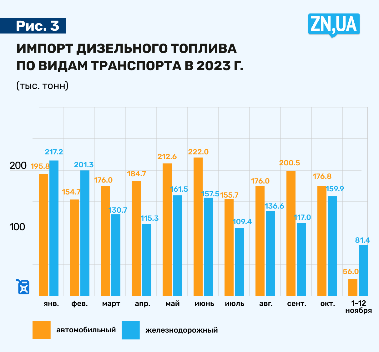 Логическим выходом из ситуации стала переориентация на железнодорожный транспорт (см. рис. 3). Согласно данным enkorr, в октябре поставки дизеля по железной дороге выросли на 37%.