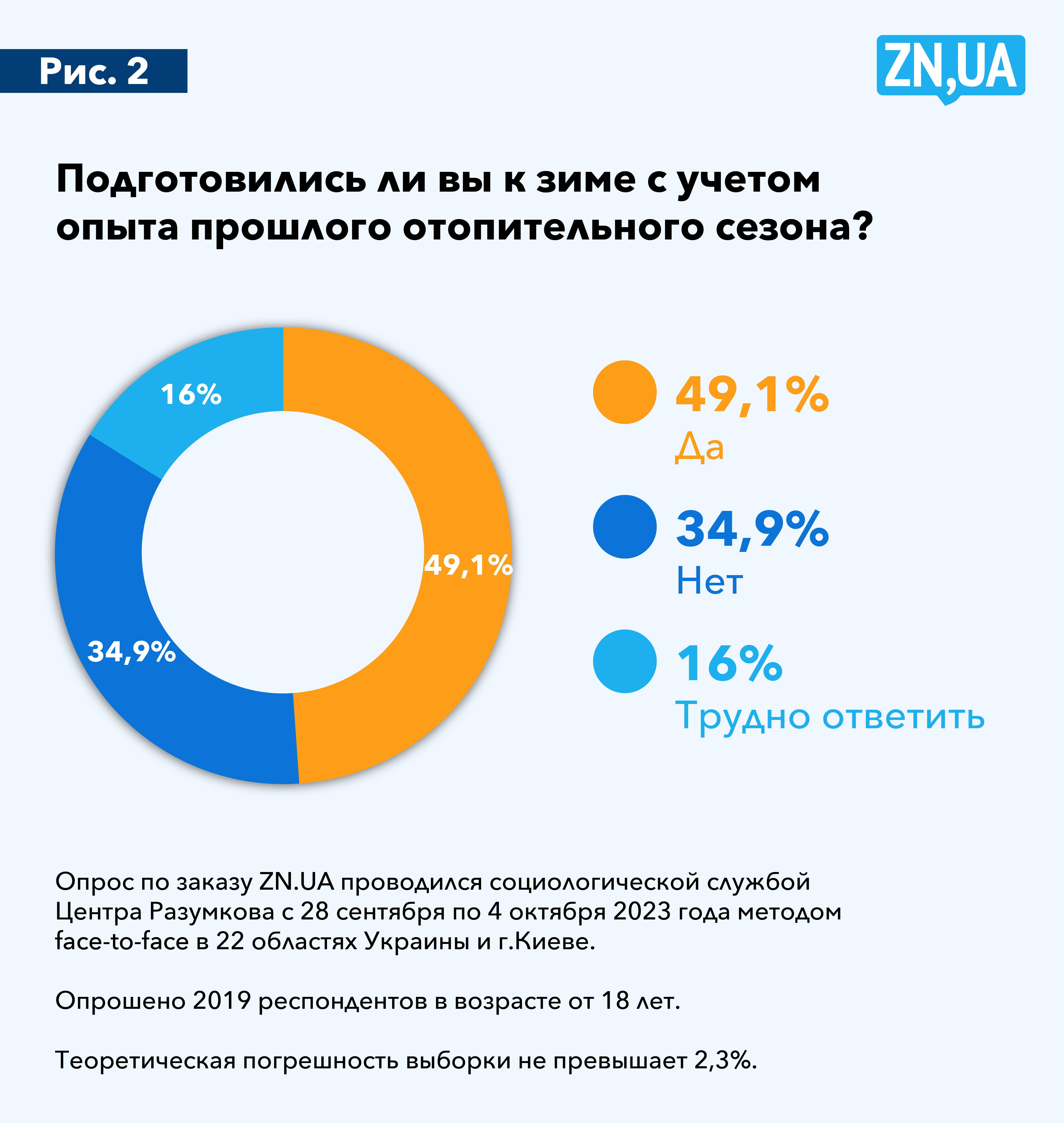 Логично было бы предположить, что это результат опыта предыдущего осенне-зимнего периода, впрочем, ожидаемого единодушия в ответе на вопрос «Подготовились ли вы к зиме с учетом опыта прошлого отопительного сезона?» мы не увидели (см. рис. 2). Утвердительно ответили только 49% опрошенных, почти 35% выбрали вариант «Нет», еще 16% — вариант «Трудно ответить».