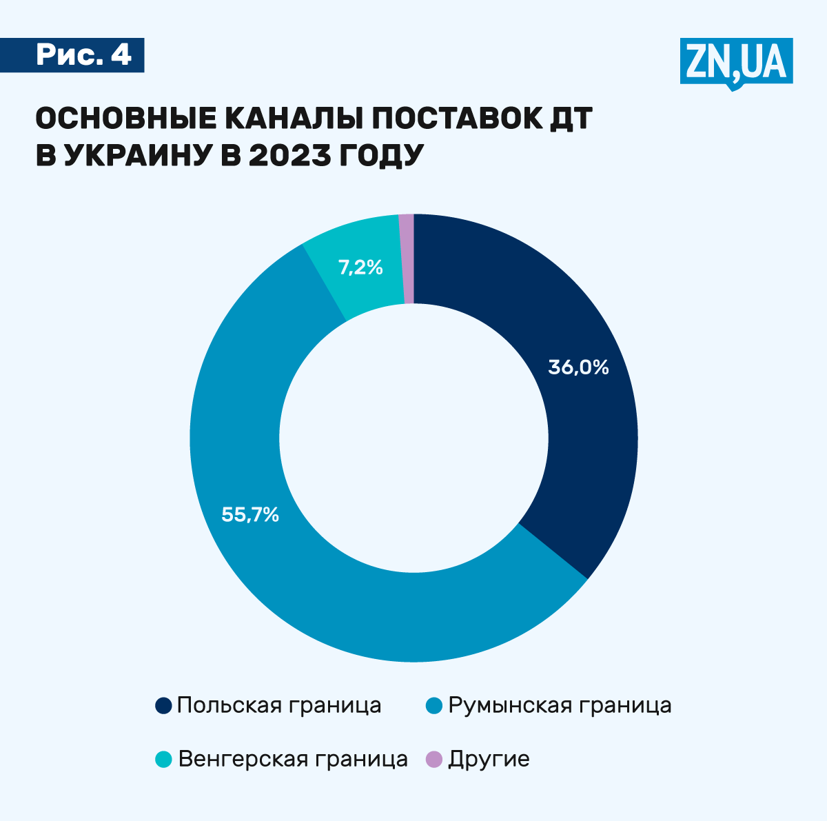 Импорт топлива в Украину осуществляется в основном по двум приблизительно равнозначным направлениям — польскому и румынскому (см. рис. 3–4). Тут имеется в виду именно место пересечения украинской границы, а не происхождение топлива. По поводу последнего, то палитра производителей насчитывала в 2023 году 22 страны. Незаметно в будничность превратилось присутствие на заправочных станциях дизтоплива и сжиженного газа из США. Среди экзотических до сих пор стран отметим Кувейт, танкер в адрес украинской сети UPG шел по воде 15 тыс. км. Также встречались партии из Китая, Омана и Тайваня.