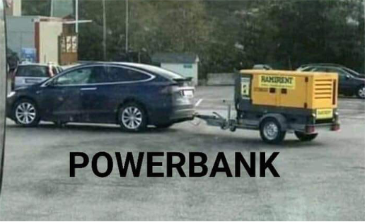 Спасительная соломинка — генератор в багажнике, который придется возить вместе с канистрой горючего как частную заправочную станцию. Бородатый мем о «Тесле» с прицепом-генератором в Украине становится обыденностью.