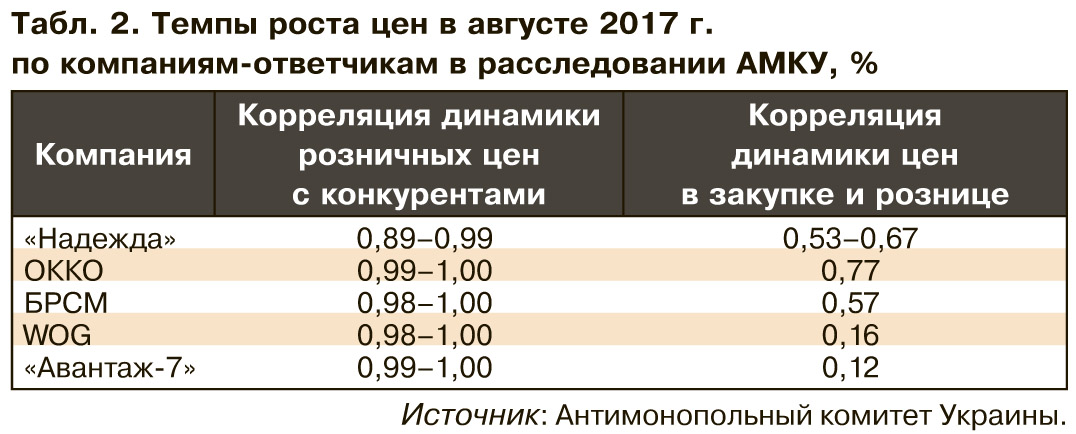 АМКУ подчеркивает, что хотя прямой импорт из РФ в 2017 г. и сократился, на общем уровне поставок и запасов ответчиков это сильно не сказалось. Как следует из текста решения, в июне-августе 2017-го группа "Надежда" вместе с ООО "Глуско-Украина" были крупнейшими оптовыми операторами в стране, а их политика в значительной мере влияла на весь розничный рынок. WOG, БРСМ, "Авантаж 7" в опте появлялись эпизодически, а ОККО до августа 2018 г. вообще оптом не занималась.