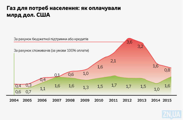 Общий ресурс газа собственной добычи для населения в 2014 г. составил 13,8 млрд кубометров (13,4 млрд - газ, добытый "Укргаздобычей", 0,3 млрд - газ, добытый "Черноморнефтегазом" в первом квартале 2014 г., и 0,1 млрд - газ, который на начало года находился в ПХГ). Население в 2014 г. потребило 15 млрд кубометров газа, при этом 1,2 млрд было покрыто за счет дорогого импортного газа.