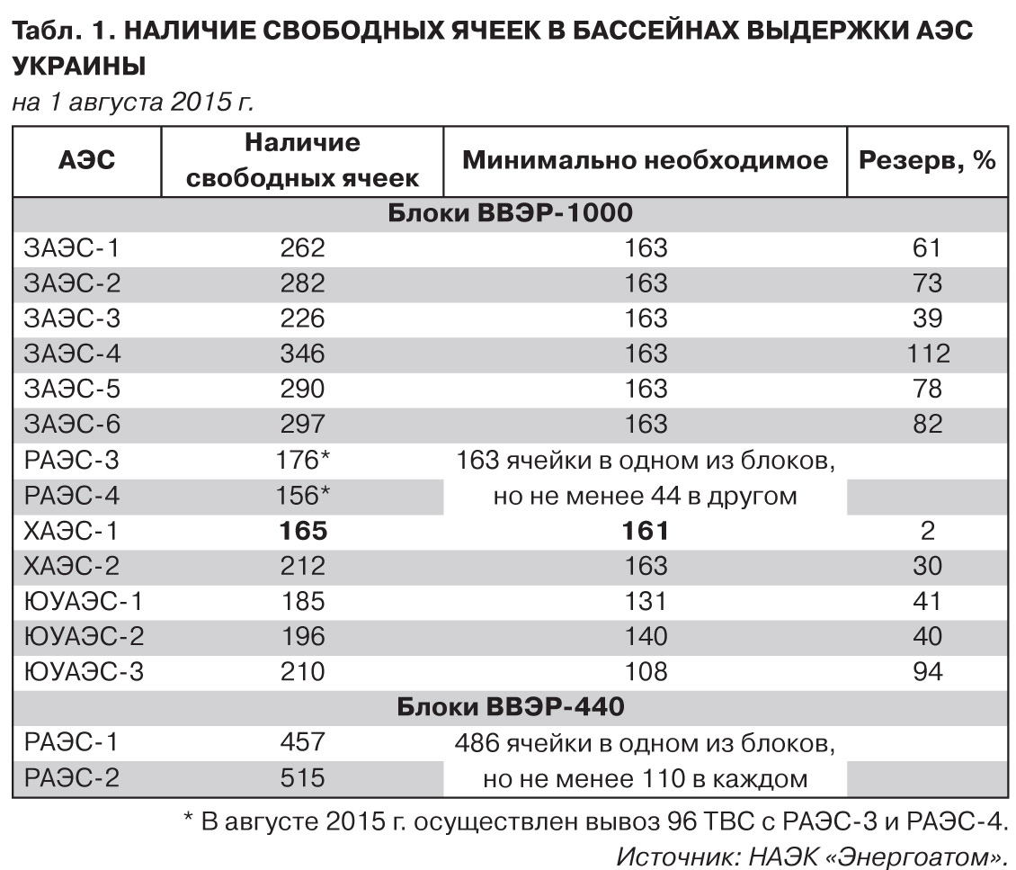 В случае же резкого прекращения вывоза ОЯТ ожидается, что в 2017 г. "дефицит свободных ячеек в бассейнах выдержки может привести к остановке работы семи энергоблоков ВВЭР-1000 (три блока на ЮУАЭС, по два блока на РАЭС и ХАЭС)…