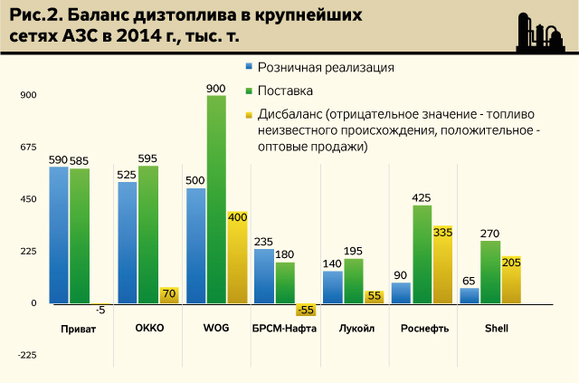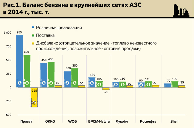 Как ранее сообщало ZN.UA, на кустарное производство на БРСМ однозначно указывает номенклатура получаемых компанией грузов (стабильный бензин, газоконденсат, октаноповышающие присадки и т.д.). Также об этом говорит ресурсный дисбаланс: сеть БРСМ продает в розницу намного больше нефтепродуктов, чем закупает топлива для реализации. По итогам 2014-го и января-апреля 2015 г., такой дефицит по группе БРСМ составил более 100 тыс. т бензина и дизельного топлива.