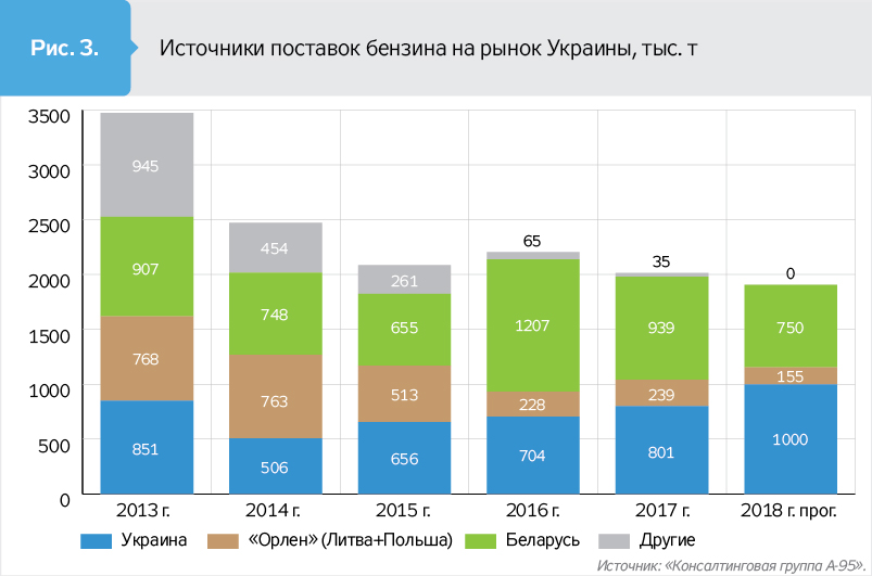 Описанные изменения в поставках на протяжении последних двух лет привели к построению более устойчивой модели снабжения рынка. Если ранее рынок был ориентирован исключительно на Беларусь, то в 2017-м и 2018 г. конструкция стала более сбалансированной и устойчивой. Помимо трех ключевых источников поставок - Беларуси, России и украинских НПЗ, в качестве вспомогательного остается импорт из Литвы и Польши (польский концерн "Орлен"), а также по морю. Поляки сыграли важную роль в наполнении рынка осенью, одновременно удержав свою долю рынка. Кроме того, они заложили фундамент на 2018 г., так как ряд сетей перекинул с Беларуси на "Орлен" часть своих закупок, считая их более надежными.