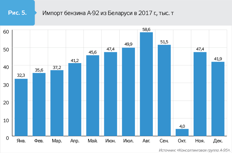 Основной причиной своих бед являются сами белорусы. В октябре 2017 г. они снизили поставки бензина А-92 в 12 раз от среднемесячного уровня, А-95 - вчетверо. В разгар сезона на 25% упали поставки ДТ. При этом, по словам балтийских трейдеров, белорусы отправили на море около 100 тыс. т бензина.