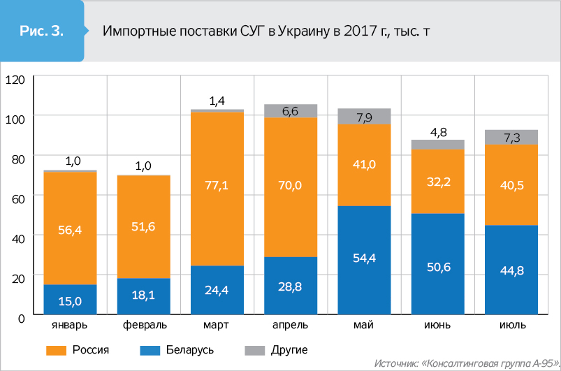 Колоссальный рост украинского рынка в течение последних трех лет обеспечила… Россия. Именно отсюда покрывался растущий аппетит на дешевое топливо. В 2016 г. доля российских поставок в импорте составляла 71%, а в общем потреблении - около 50%.