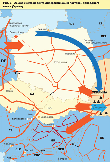 Идея предложенного объединительного инфраструктурного проекта заключается в создании новых возможностей доступа Украины к наиболее ликвидным торговым площадкам Северо-Западной Европы и "вовлечении" ряда западноукраинских ПХГ в общеевропейскую сеть хранения природного газа (см. рис. 1).