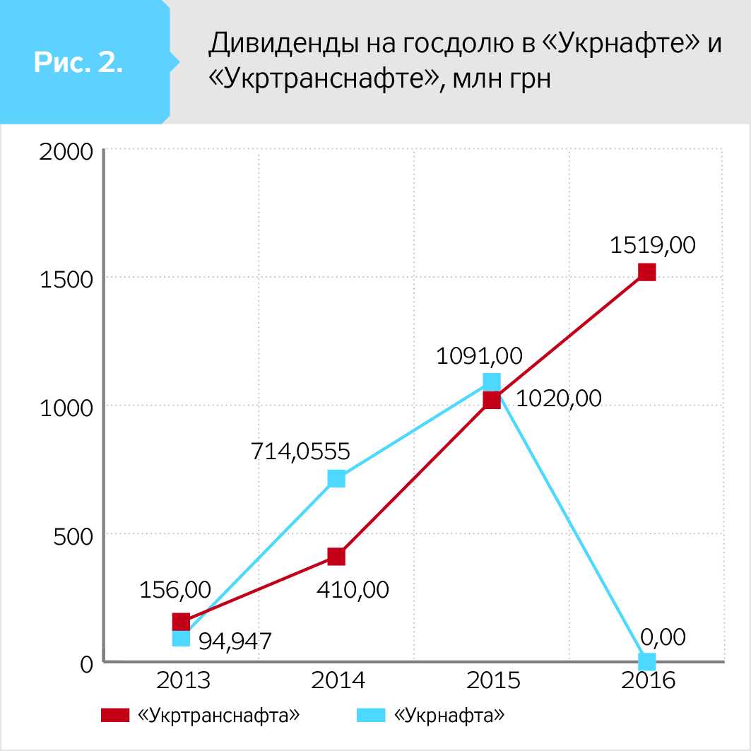 По итогам 2016 г. дивиденды вырастут в полтора раза - до 1,519 млрд грн. Это 100% прибыли за прошлый год. Хотя еще в 2014-м, в последний год работы Лазорко главой компании, "Укртранснафта" показала минус 54 млн грн.
