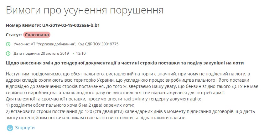 "Объем топлива существенный, причем не разделен на лоты, а адреса складов охватывают всю территорию Украины, что усложняет процесс производства и его поставку в соответствии с указанными сроками. К тому же обращаем ваше внимание, что бензин (А-80-ДЗ-прим.) не имеет серийного производства, а также ни разу не производился и не отгружался для нужд армии", - обосновывал свою позицию производитель.
