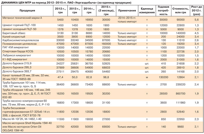 Можно, конечно, предположить, что собственная добыча не привязана к курсу доллара, но это не совсем так. "Укргаздобыча", как и другие добывающие компании, использует импортное оборудование и материалы, доля которых достигает 40% в общем объеме закупок компании (см. табл.). Заменить импортную продукцию в такой высокотехнологичной сфере, как добыча природного газа, невозможно. Более того, вся продукция отечественного производства, используемая в процессе добычи углеводородов, также существенно подорожала и продолжает дорожать на фоне девальвации гривни.