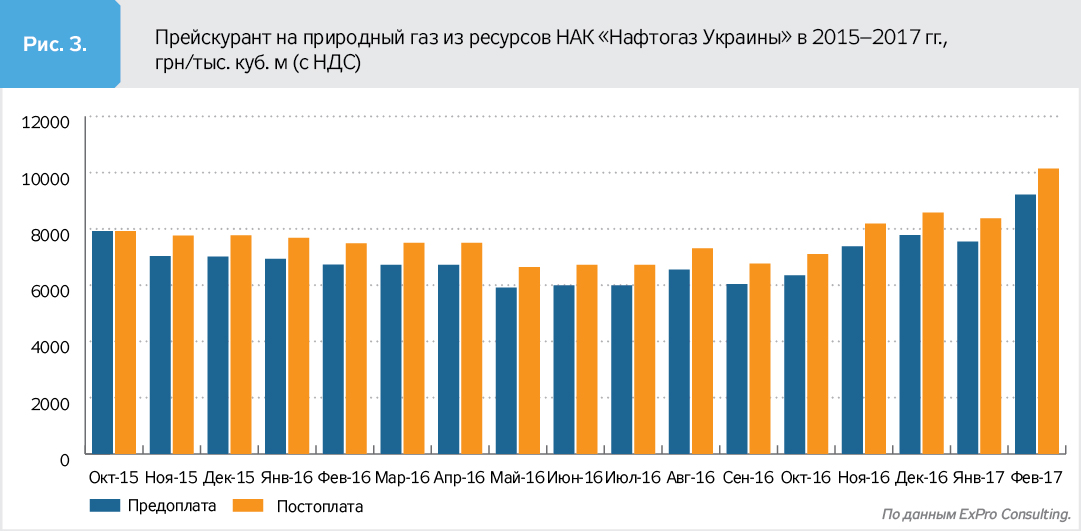 Потребление газа населением и бюджетными организациями составило 12,5 млрд кубометров, рост на 2,3% по сравнению с 2015 г. И это несмотря на то, что цены на газ для населения с мая 2016 г. выросли до 6879 грн за тысячу кубометров (с НДС). Кроме этого, государство финансировало программы по энергоэффективности для населения.