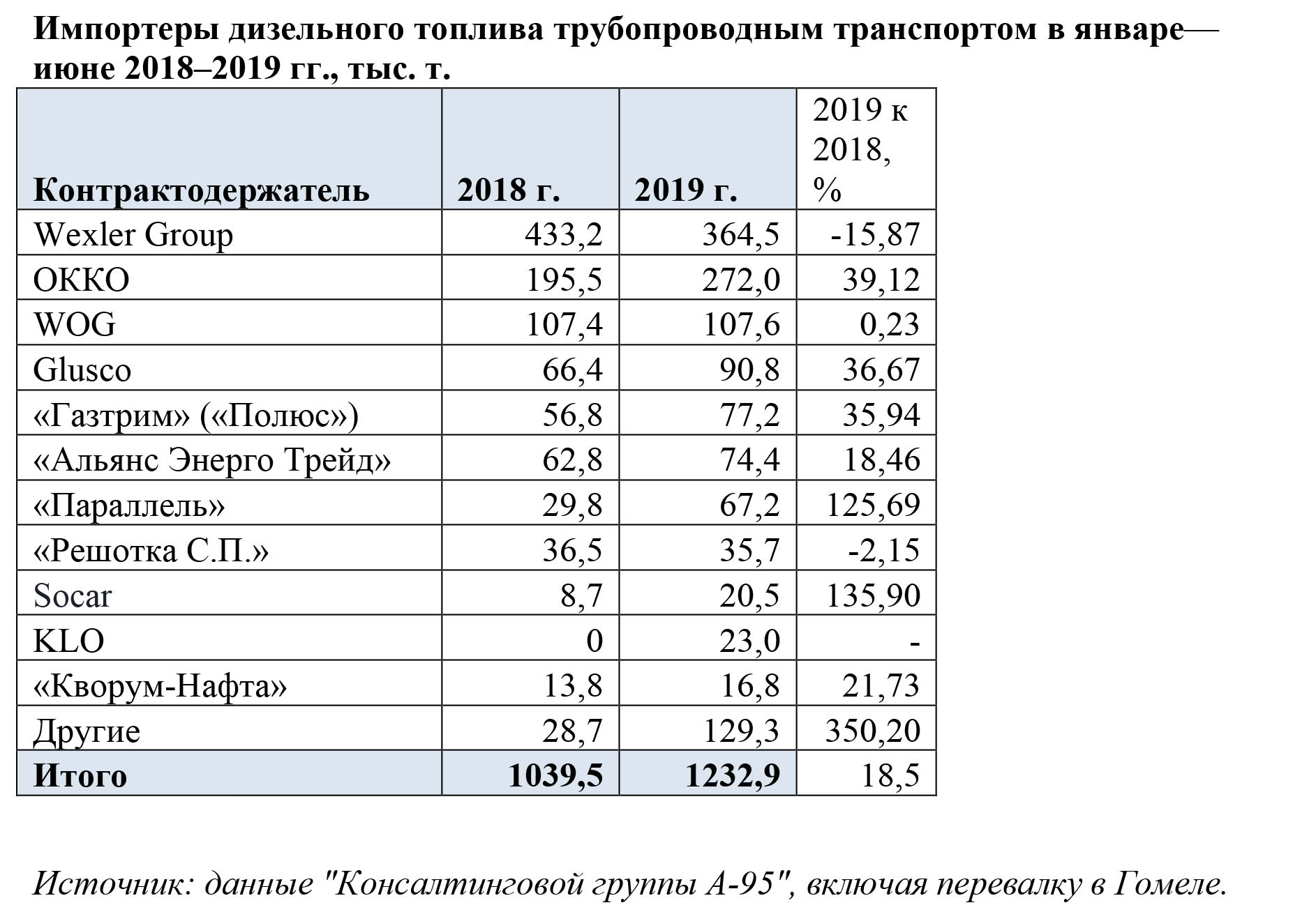 25 июля 2019 года крупнейший импортер российского дизельного топлива по нефтепродуктопроводу "ПрикарпатЗападтранс" Wexler Group заявила о приостановке импорта по трубопроводу с 1 августа из-за введения специальных пошлин Украиной.