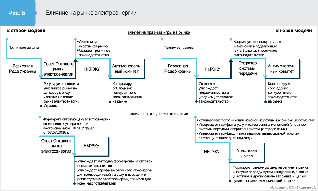 Показательно и то, как и кто влияет на правила игры и цены на рынке электроэнергии в старой и новой версии (см. рис. 6).