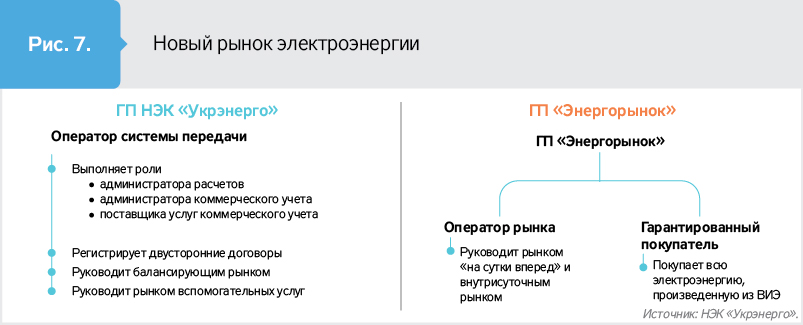 Новый рынок электроэнергии требует новых функций. И если с оператором системы передачи все относительно понятно (передача электроэнергии и диспетчеризация), то есть вопрос по поводу того же ГП "Энергорынок", который с 1 июля будет выполнять две функции (см. рис. 7). Почему? Да потому, что толком неизвестно, заработает ли новая модель как часовой механизм, без сбоев. И потому, что кто-то же должен выкупать неравномерно производимую "зеленую" энергию (привет лоббистам "зеленки). Вот этим и будет для начала заниматься ГП "Энергорынок", которое правительство наделило титулом и функциями гарантированного покупателя.