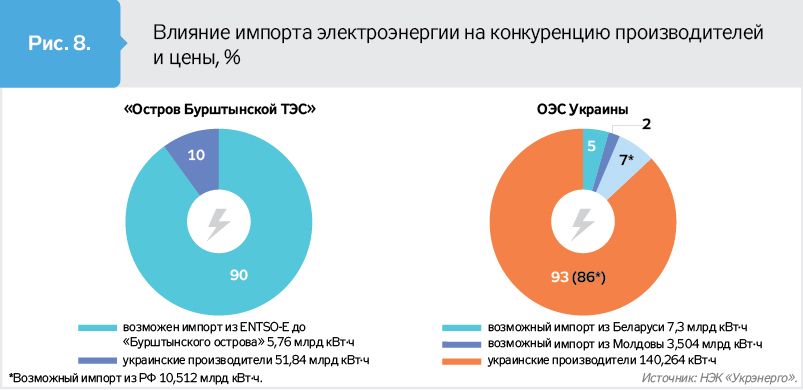 Не обремененный проблемами энергорынка читатель справедливо спросит: "Если в стране и так излишек электроэнергии, то зачем ее еще и импортировать?". Вполне логичный вопрос, на который есть такой же логичный ответ. Если кратко: для баланса, прежде всего ценового. И для практической, а не только виртуальной конкуренции производителей в Украине (см. рис. 8). Потому что в Европе стоимость электроэнергии зачастую ниже, чем той же ДТЭКовской тепловой.