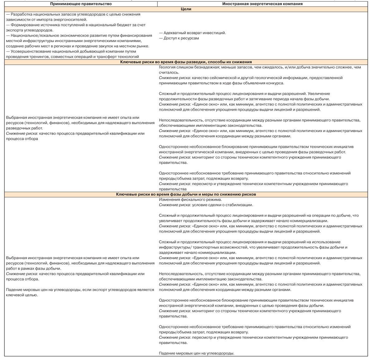 При заключении СРП у принимающего правительства намного больше возможностей для достижения собственных целей и избежания рисков, чем у иностранной энергетической компании. В приведенной таблице перечислены основные риски и способы их избежания.