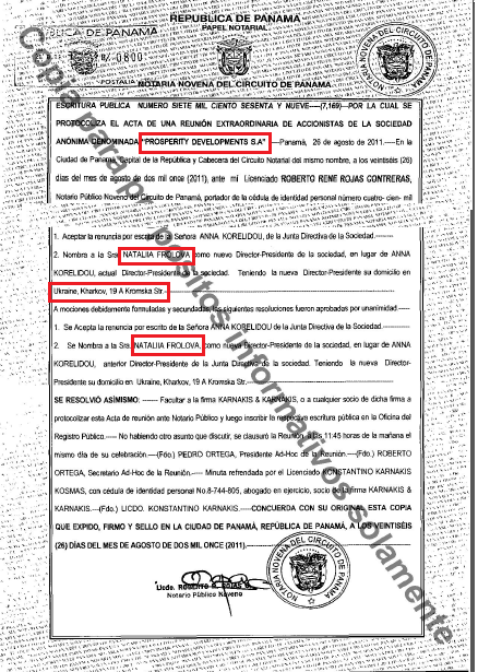 Через сайт www.investigativedashboard.org мы узнали о настоящих владельцах панамской компании. Одним из владельцев является Наталия Фролова, проживающая в Харькове по ул. Кромской, 19а.