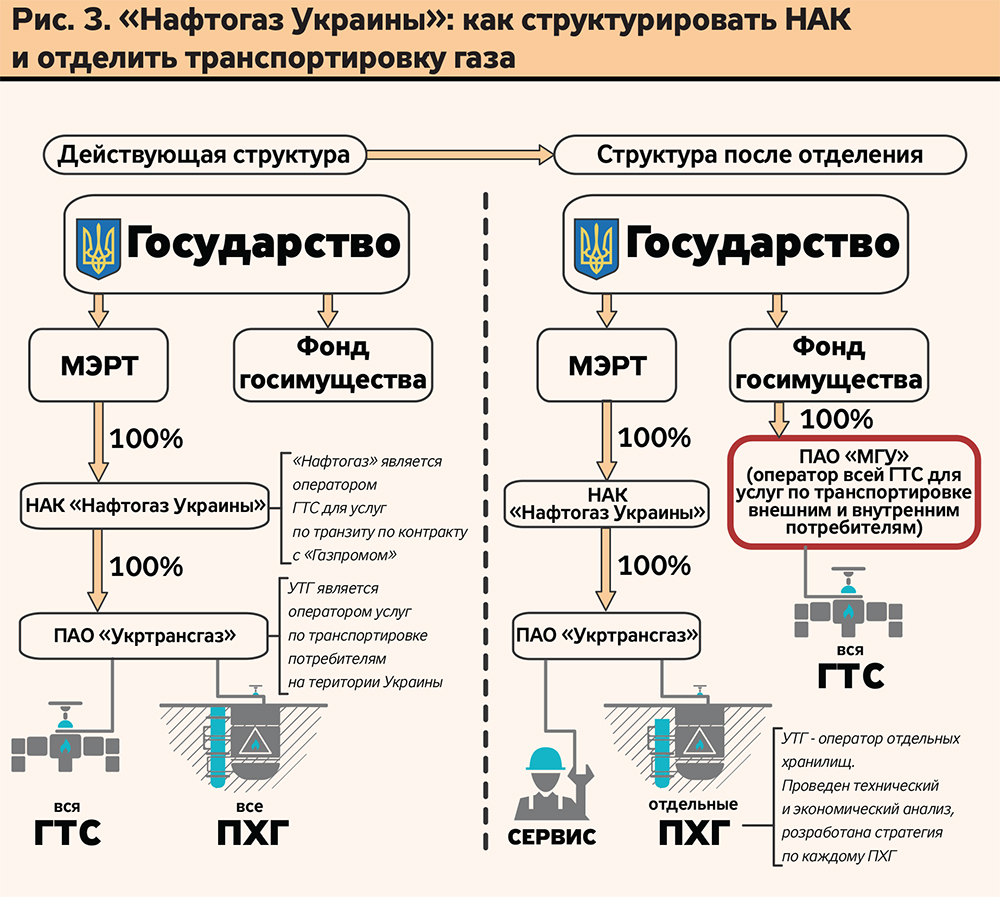 Глава НАКа считает, что из структуры нынешнего "Укртрансгаза", оперирующего и газотранспортной системой (транспортировка), и подземными хранилищами газа (хранение), в новую структуру будет выделено до 70% объектов, входящих в нынешнюю инфраструктуру ГТС.