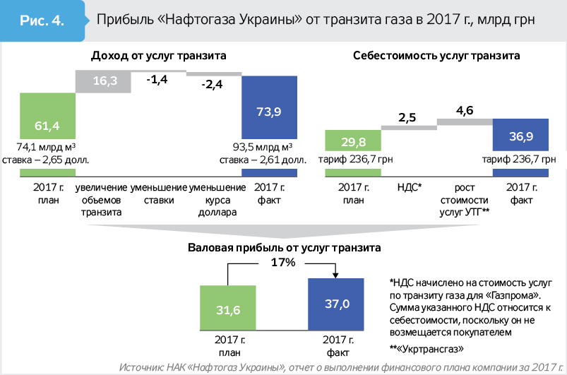 Громко презентуя годовой отчет за 2017 г., НАК постоянно отмечает: "Победа в арбитражных производствах против "Газпрома" стала главным фактором прибыльности группы в 2017 г. - "Нафтогаз" получил самую большую за свою двадцатилетнюю историю чистую прибыль… Без положительного эффекта арбитража по делу о транзите газа Группа понесла бы чистый убыток в размере 7,4 млрд грн".