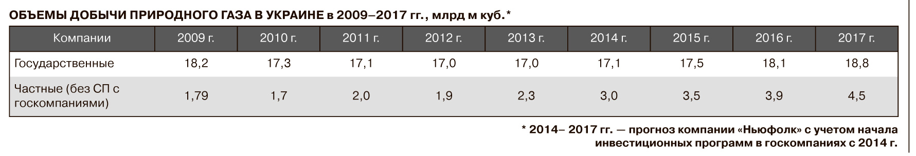 Стоит ли удивляться, что газодобыча, точнее, крупнейшие добытчики природного газа - государственные и полугосударственные компании "Укргаздобыча" (УГД) и "Укрнафта", соответственно, оказались в загоне? Конечно, сказывается и "эффективное" управление, отданное на откуп олигархам. "Укрнафта" за последние пять лет снизила добычу газа вдвое - до 2 млрд кубометров (2013 г.), а "Укргаздобыча" - производитель 75% газа в стране - еще в конце прошлого года начала сползать вниз, ускоряясь на этом пути в текущем году. За пять месяцев 2014 г. УГД потеряла в добыче 1,5% по сравнению с прошлым годом, "Укрнафта" - 8%. По оценкам аналитиков компании "Ньюфолк", в 2014 г. госкомпании могут недосчитаться 0,5 млрд кубометров газа. Дальше будет хуже.