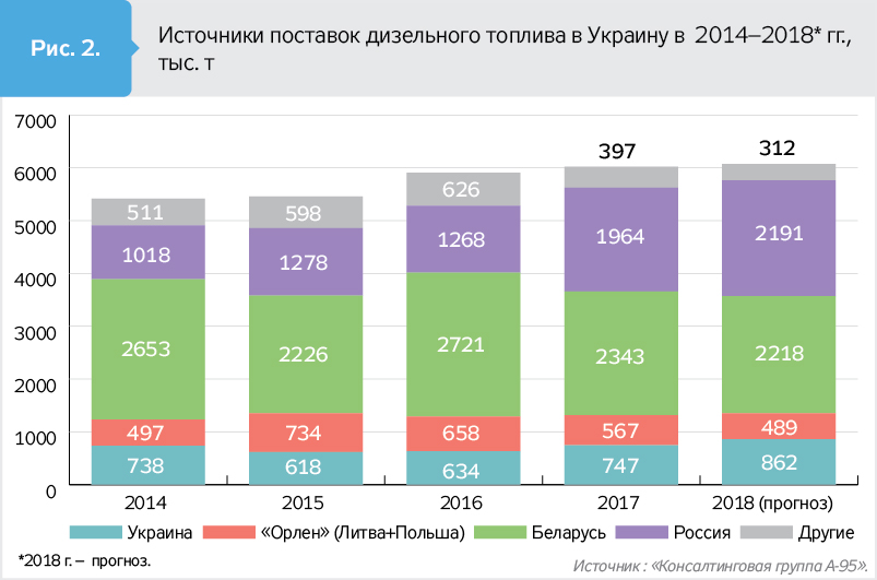 Поскольку возрождения новых НПЗ не предвидится, под "украинской" долей рынка необходимо понимать преимущественно часть группы "Приват". Шебелинский ГПЗ не имеет возможности существенно нарастить мощность и планирует к 2019–2020 гг. выйти на переработку 800 тыс. т сырья в год, что обеспечит около 6,25% рынка бензина и ДТ. Таким образом, "Приват" видит себя на более чем 60% рынка, что уже является монополией.