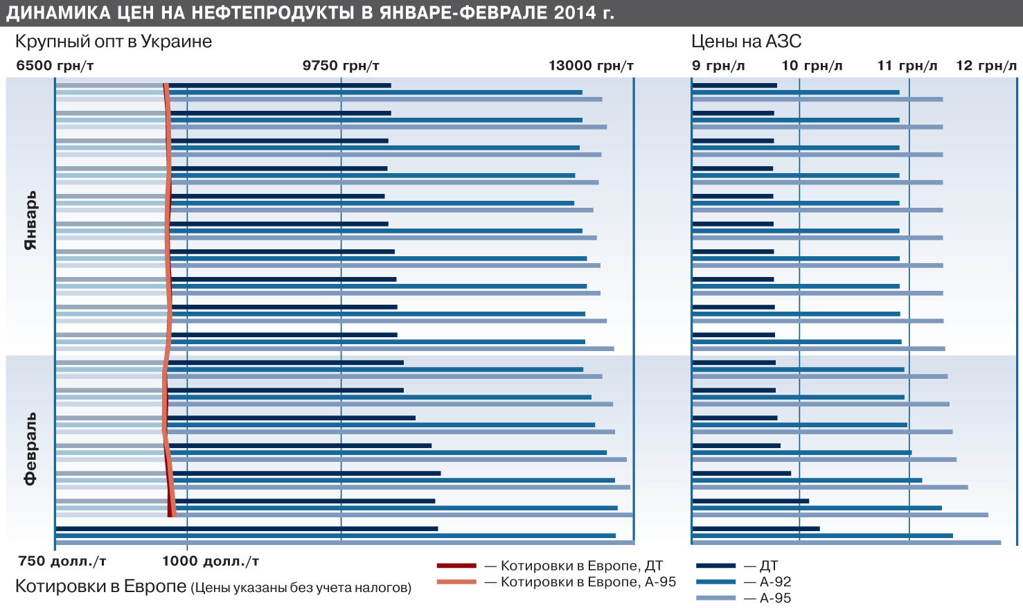 Проблема также и в том, что нефтепродукты приобретаются в привязке к мировым котировкам, меняющимся фактически ежедневно. Как можно предсказать курс доллара в Украине и бензина в Европе на неделю вперед? Масштаб проблемы немалый, ведь импортными нефтепродуктами наполняется до 80% рынка страны.
