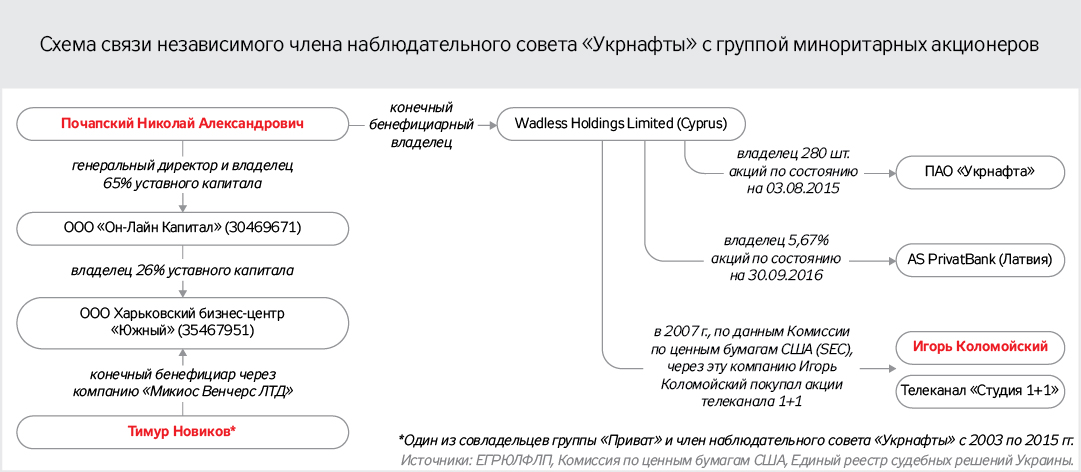 Более того, Почапский вместе с Тимуром Новиковым, бывшим членом набсовета "Укрнафты" и ближайшим соратником Игоря Коломойского, является соучредителем ООО "Харьковский бизнес-центр Южный". И это не все ниточки, связывающие его с империей "Привата" (см. рис.).