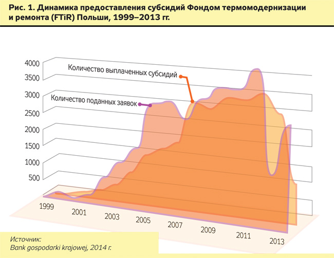 Сначала расходы взяло на себя государство, субсидируя теплоснабжение. О модернизации жилья всерьез не говорили: у населения не было денег на ремонт домов, даже если привлечь коммерческий кредит в банке. Но в 1998 г. дотировать энергопотребление прекратили. Вместе с тем государство взяло курс на финансирование модернизации домов. Был создан Фонд термомодернизации и ремонтов (FTiR), который до сегодняшнего дня является основной опорой государства в проведении политики улучшения энергоэффективности в Польше.