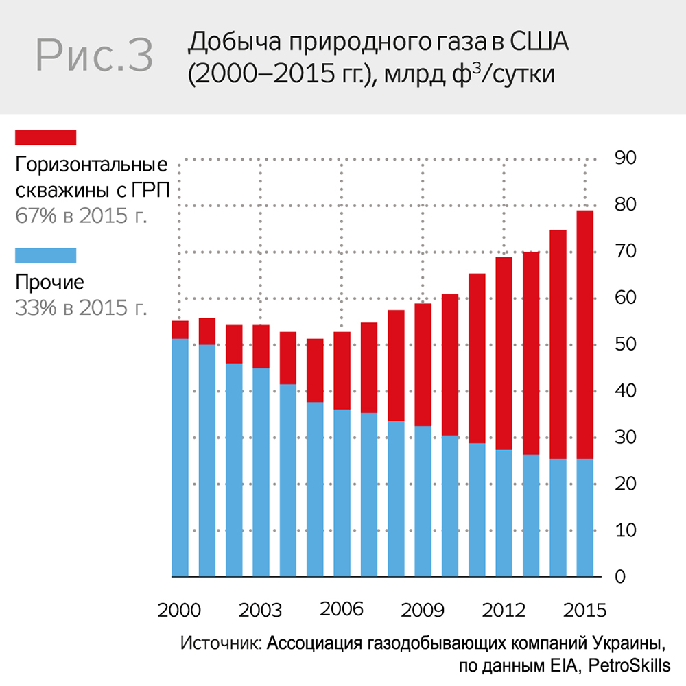 Во-вторых, немаловажное значение в освоении геологического потенциала имеют и доступные технологии разведки и добычи. За последних десять лет США удвоили добычу, залогом чего стала высокая продуктивность проводимых работ. По данным компании Petro Skills, они превышают показатели украинского бурения в 4–15 раз (!). Сегодня 67% американской добычи обеспечены за счет осуществления горизонтального бурения скважин и операций по гидроразрыву пластов. То есть извлекаются те залежи, которые ранее казались недоступными, и все больше ресурсов переходят из прогнозных в категорию запасов (извлекаемых).