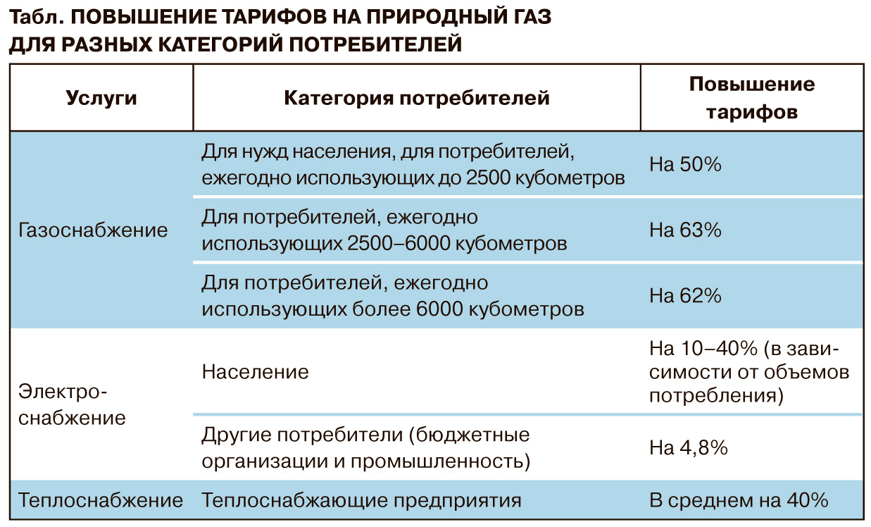 Директива 2003/55/ЕС относительно общих принципов функционирования внутреннего рынка природного газа предусматривает основные принципы рыночной либерализации, в частности независимость регулятора, недискриминационный доступ третьих сторон к системам транспортировки и распределения газа, свободный выбор потребителями поставщиков, независимость системных операторов, юридическое разделение вертикально интегрированных компаний с целью предотвращения какой-либо дискриминации, стандарты защиты прав потребителей, что важно в условиях резкого увеличения тарифов на энергоносители для потребителей Украины (см. табл.).