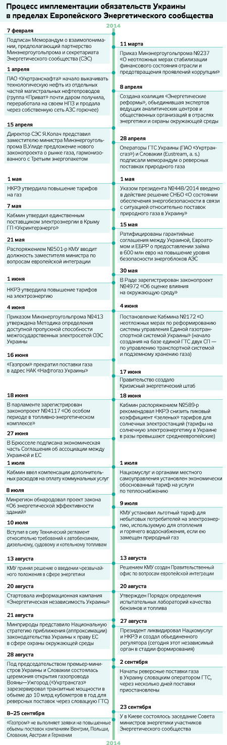 Украина закончила председательствовать в Энергетическом сообществе. На протяжении 2014 г. наша страна предлагала стратегические перспективы, определяла повестку дня сотрудничества. Тем более это было сложно при условии существующей энергетической угрозы и войны на Востоке Украины. Однако Энергетическое сообщество ожидает реформ от украинского правительства.
