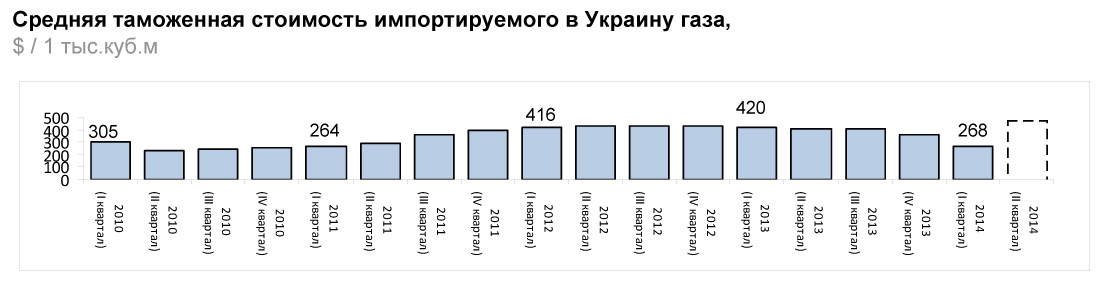 Второе заблуждение: стоимость украинского газа не превышает 50 долл.