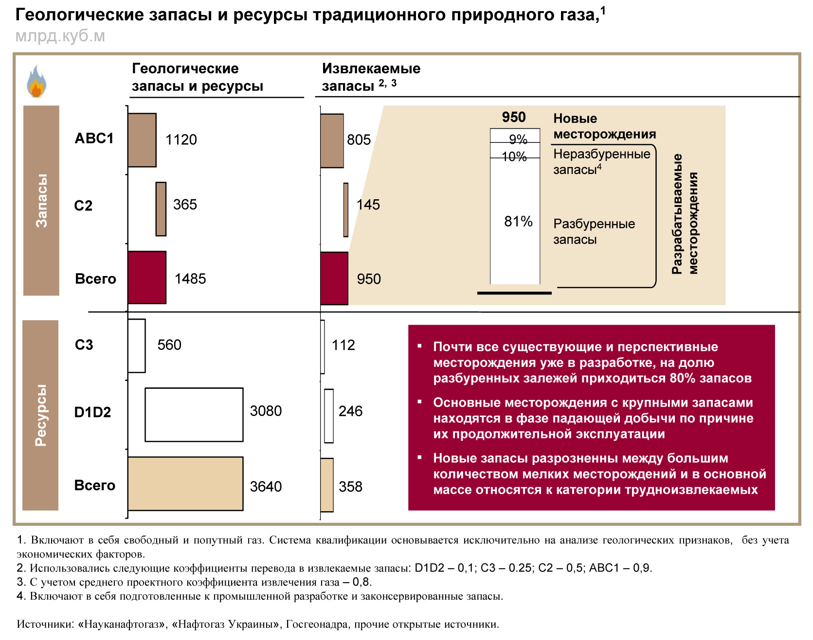 Кроме того, общая структура традиционных залежей нефти и газа в Украине ухудшается, что требует все больше средств для их добычи и значительно повышает риск неудачи на начальных этапах их разработки. Более того, будущее нефтегазовой отрасли Украины - не столько в обнаружении новых крупных залежей. Оно в большей мере связано с использованием новой технологии и методов повторной разведки, позволяющих интенсифицировать эксплуатацию уже известных нефтегазоносных провинций за счет извлечения тех запасов, которые прежде оставили без внимания или сочли экономически нерентабельными для промышленной добычи. Высокие цены делают привлекательными многие месторождения с небольшими запасами, высокие расходы на разведку и разработку в труднодоступных районах становятся вполне приемлемыми. В частности, по прогнозным расчетам Wood Mackenzie, в реалиях Украины 2013 г. себестоимость добычи газа из нетрадиционных газоносных коллекторов Днепровско-Донецкой впадины составляет не менее 265 долл.