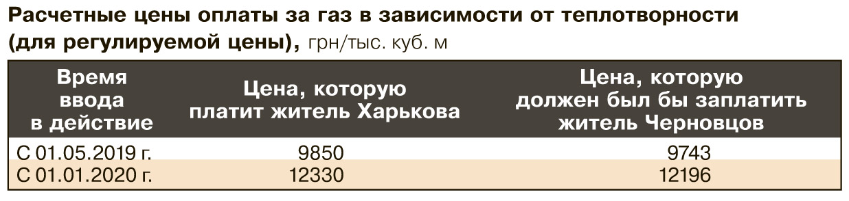 Согласно данным "Укртрансгаза", Черновицкая область платит за газ с высшей теплотой сгорания 8164 ккал/куб. м, а Харьковская - за газ с теплотворностью 8254 ккал/куб. м. Но в Черновцах газ значительно хуже, и цена должна быть ниже.