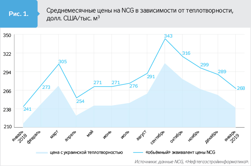 Исходя из того, что газ, как правило, закупается на ВТП в Словакии, и цена на этой площадке в основном на 6–8 долл. за 1000 кубометров выше, чем на NCG, получаем, что реальное превышение цены "Нафтогаза" для промышленности за рассматриваемый период по сравнению с ценой на NCG (кроме марта 2018 г.) составило от 15 долл. за 1000 кубометров (в августе 2018-го) до 100 долл. (в ноябре 2018-го). Разница существенная. В значительной степени это связано с разной калорийностью.